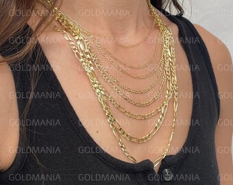 Solid 14k Gold Figaro Chain Necklace 16 30 Inch Etsy